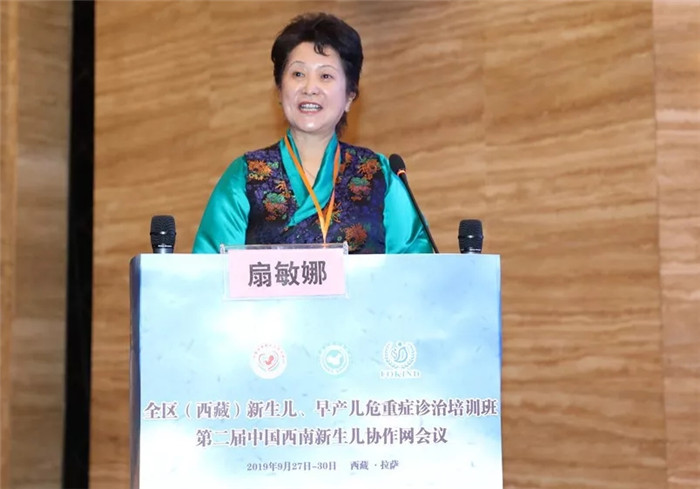 西藏醫(yī)學(xué)會兒科專業(yè)委員會主任委員、中國西南新生兒協(xié)作網(wǎng)聯(lián)合主席兼此次會議執(zhí)行主席扇敏娜教授代表西藏醫(yī)學(xué)會兒科專委會向各位領(lǐng)導(dǎo)、專家教授、區(qū)內(nèi)外兒科同道表示誠摯的歡迎;