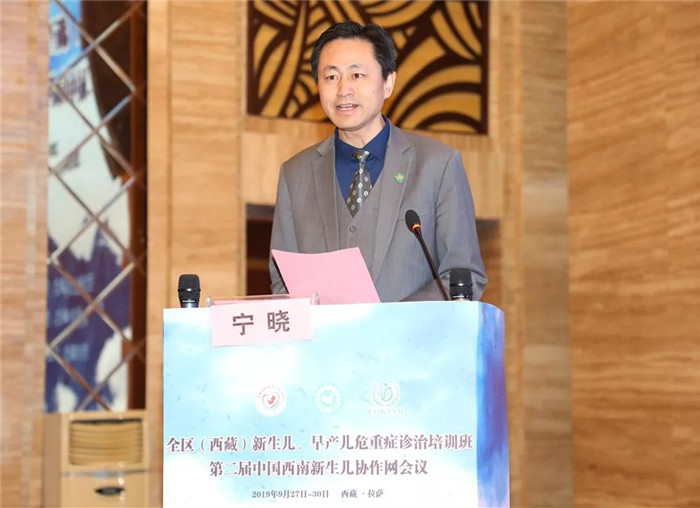 西藏阜康醫(yī)療股份有限公司總裁、西藏阜康醫(yī)院院長寧曉代表承辦方對中華醫(yī)學(xué)會兒科分會新生兒學(xué)組、中國西南新生兒協(xié)作網(wǎng)、重慶醫(yī)科大學(xué)附屬兒童醫(yī)院新生兒中心和西藏醫(yī)學(xué)會兒科專委會的信任和支持表示謝意,并預(yù)祝會議取得圓滿成功;