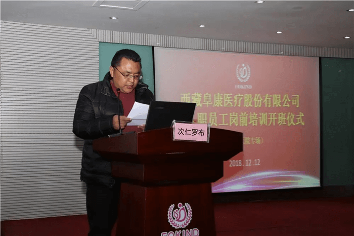 西藏玉拓醫(yī)療健康養(yǎng)老產(chǎn)業(yè)有限責(zé)任公司總經(jīng)理次仁羅布為本次培訓(xùn)活動致辭:"西藏阜康康復(fù)醫(yī)院是一家康復(fù)??漆t(yī)院,也是‘玉拓醫(yī)療’和‘阜康醫(yī)療’聯(lián)合創(chuàng)辦的醫(yī)院,我相信我們兩家公司一定會精誠合作,將康復(fù)醫(yī)院發(fā)展成為技術(shù)一流、服務(wù)一流的現(xiàn)代化醫(yī)院!”