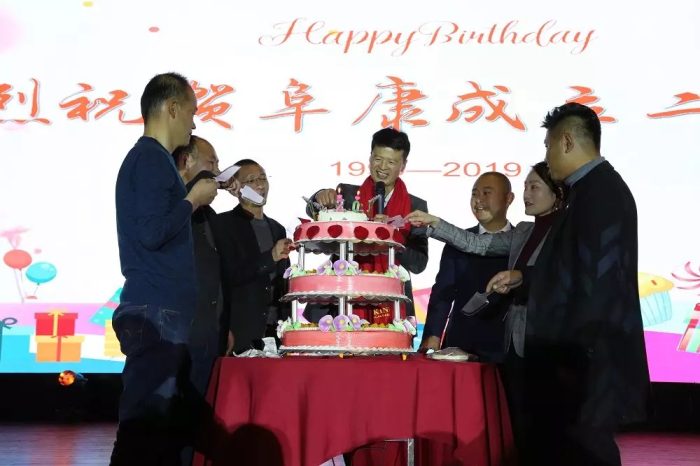 阜康二十周歲生日即將來臨,值此盛典,阜康二十年老員工和各位領導一起切蛋糕、與全體員工共同舉杯,共同祝愿"百年阜康”!