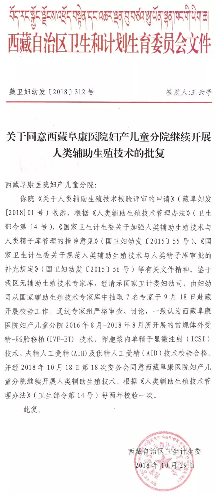 據(jù)了解,應(yīng)西藏自治區(qū)衛(wèi)計委邀請,2018年9月18日,國家衛(wèi)健委專家組張學紅、鄧曉惠、何畏、郭藝紅、張欣宗、蔣祥龍、李永剛一行蒞臨西藏阜康醫(yī)院婦產(chǎn)兒童分院,對我院生殖醫(yī)學中心的工作進行評審校驗,自治區(qū)衛(wèi)計委、拉薩市衛(wèi)計委相關(guān)領(lǐng)導陪同指導校驗工作。