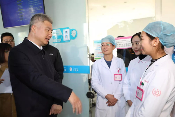 在婦產(chǎn)兒童分院口腔科,莊嚴(yán)書記見到了今年剛從內(nèi)地畢業(yè)回藏工作的大學(xué)生強(qiáng)巴卓嘎。強(qiáng)巴卓嘎告訴莊嚴(yán)書記,自己在內(nèi)地讀了5年口腔專業(yè),在阜康工作很開心,收入也不錯,現(xiàn)在有越來越多的同學(xué)愿意到民營企業(yè)工作。莊嚴(yán)書記勉勵強(qiáng)巴卓嘎認(rèn)真學(xué)習(xí)臨床技術(shù),要不斷學(xué)習(xí)深造,提高自己專業(yè)技能,無論在公立醫(yī)院還是民營醫(yī)院工作,都是在為百姓的健康服務(wù)。
