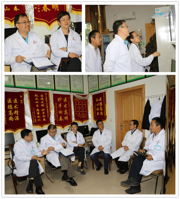 回到消化內(nèi)科醫(yī)生值班室,周平紅教授和阜康醫(yī)院醫(yī)護(hù)人員一起進(jìn)行會(huì)診。周平紅教授認(rèn)真聽取了阜康醫(yī)院消化內(nèi)科醫(yī)生的匯報(bào),仔細(xì)查閱患者的各種檢查資料,對幾起復(fù)雜病例指明了診治方向。