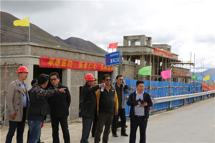 2018年了8月9日,受阜康邀請(qǐng),西藏自治區(qū)政協(xié)副主席、區(qū)工商聯(lián)主席、區(qū)總商會(huì)會(huì)長(zhǎng)阿沛·晉源,拉薩大昭寺管家洛桑,西藏自治區(qū)社會(huì)科學(xué)院原處長(zhǎng)次旺仁青,西藏阜康醫(yī)療股份有限公司黨委書記、董事長(zhǎng)王斌,西藏阜康醫(yī)療股份有限公司黨委副書記、副總經(jīng)理陳彬,西藏阜康醫(yī)院名譽(yù)院長(zhǎng)嘎布,阜康生殖醫(yī)學(xué)中心實(shí)驗(yàn)室主任劉鋒,阜康體檢中心主檢師瓊瑪,阿沛·晉源主席秘書旦增一行早上8點(diǎn)從拉薩出發(fā),一路顛簸馳騁于下午2點(diǎn)50分許抵達(dá)那曲地區(qū)嘉黎縣夏瑪鄉(xiāng)。聽說晉源主席要來視察衛(wèi)生院的建設(shè)工作,嘉黎縣縣長(zhǎng)吾金不顧受傷的左腿帶領(lǐng)當(dāng)?shù)馗刹咳罕娫缭绲群蛟谙默斷l(xiāng)衛(wèi)生院建設(shè)現(xiàn)場(chǎng)。