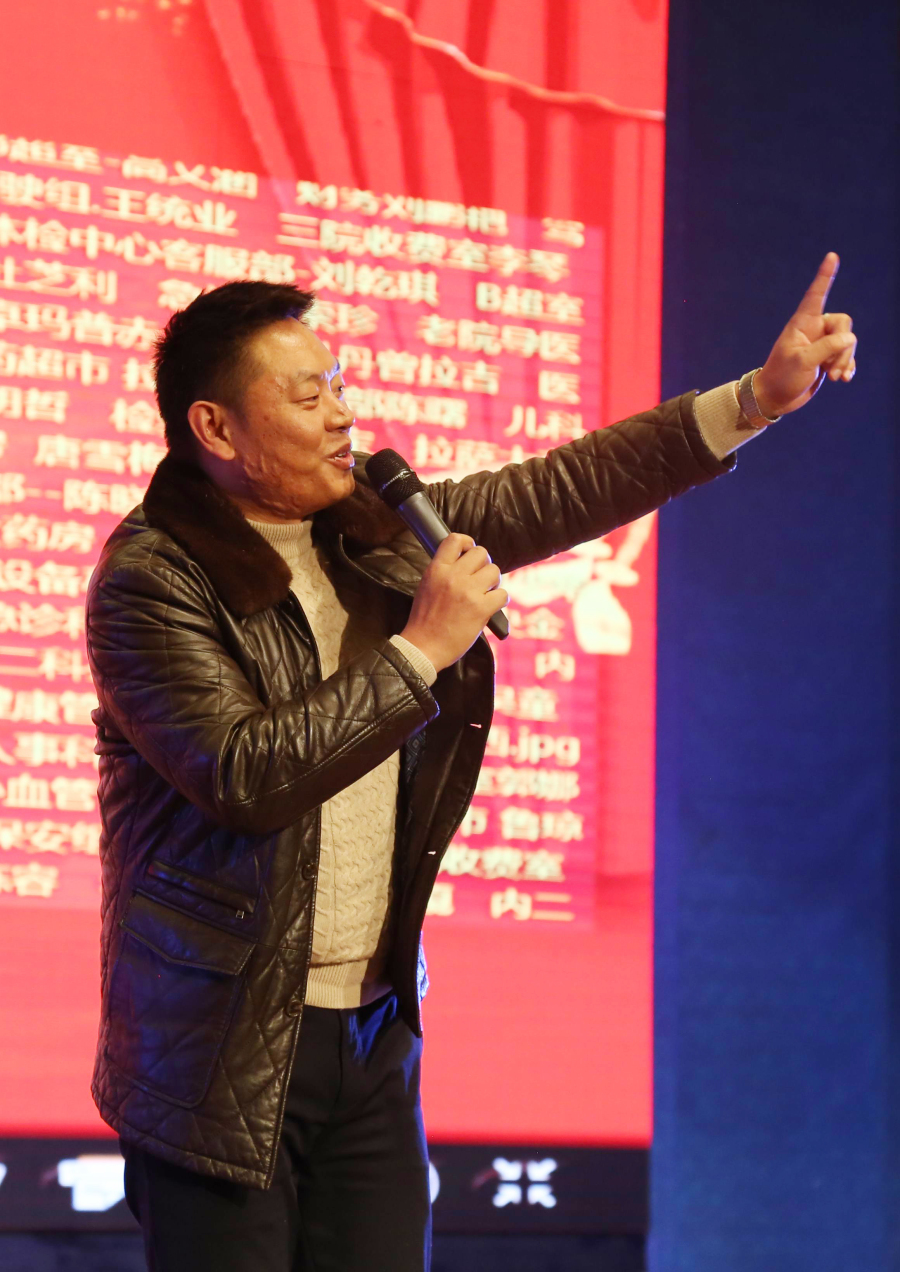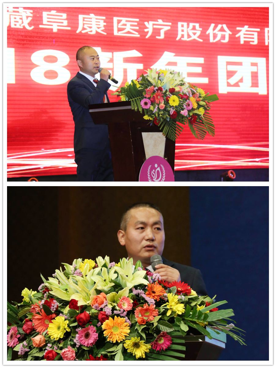 隨后,董事長(zhǎng)王斌走上講臺(tái)飽含激情地說"我之存在,因?yàn)橛心恪?,并向所有來賓鞠躬致謝。董事長(zhǎng)王斌講述了阜康發(fā)展史、阜康人的奮斗史,從2005年的47名員工到現(xiàn)在的1024名員工,并再次感謝一路伴隨阜康成長(zhǎng)的所有人,還指出2018年是阜康發(fā)展史上很關(guān)鍵的一年,要早計(jì)劃、早安排、早部署,要以十九大精神為指導(dǎo),堅(jiān)持科學(xué)發(fā)展觀,早日把阜康建設(shè)成為現(xiàn)代化醫(yī)院。