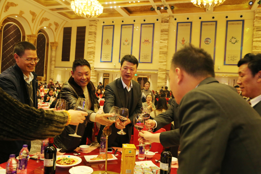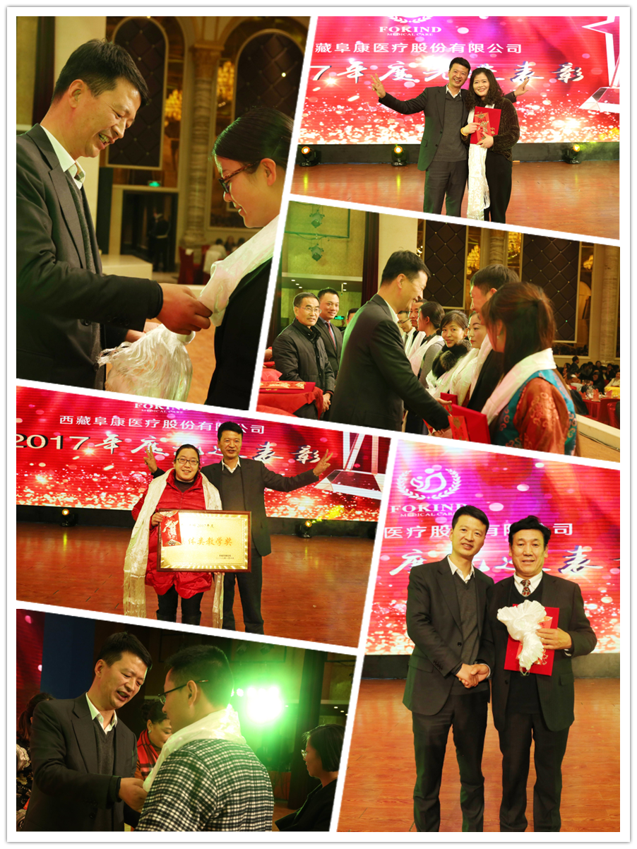 晚宴尾聲,董事長(zhǎng)王斌邀請(qǐng)所有院級(jí)領(lǐng)導(dǎo)上臺(tái)共同舉杯說:"希望大家在新的一年繼續(xù)沿著創(chuàng)新的道路團(tuán)結(jié)一致、規(guī)范管理、用心服務(wù),開源節(jié)流地做好自己本職和醫(yī)院的工作。我相信,在各位阜康同仁的共同努力下,2018年我們一定會(huì)保質(zhì)、保量完成工作計(jì)劃。為保障西藏自治區(qū)廣大人民群眾的身體健康做出新的更大的貢獻(xiàn),促進(jìn)醫(yī)院健康、持續(xù)、穩(wěn)步地向前發(fā)展,更上一層樓,再鑄新輝煌! ”