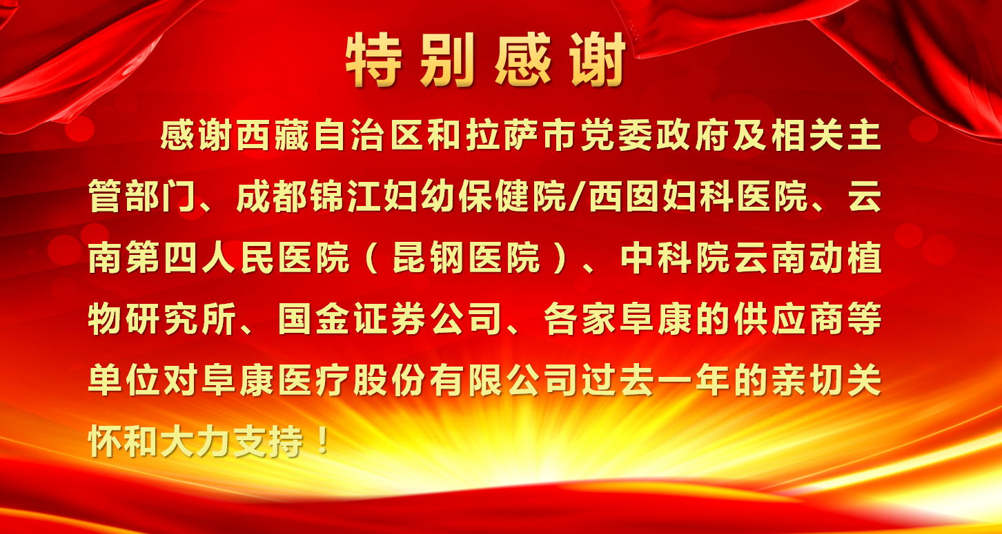我之存在,因?yàn)橛心?;百年阜康,感恩有您。感恩是一種態(tài)度、一種美德、一種情懷!不忘初心、砥礪前行,感謝你們的一路陪伴,阜康的輝煌離不開每一位阜康人的奉獻(xiàn),雄關(guān)漫道真如鐵,而今邁步重頭越!2018年將是阜康騰飛的一年,在各級(jí)領(lǐng)導(dǎo)關(guān)心下,各位同仁支持下,阜康一年更比一年好!以十九大精神為指導(dǎo),努力打造"團(tuán)結(jié)、創(chuàng)新、規(guī)范、節(jié)約、用心”五位一體的現(xiàn)代化醫(yī)院!為西藏人民群眾解決看病遠(yuǎn)、看病難、看病貴的問題,全心全意為西藏人民健康服務(wù)!