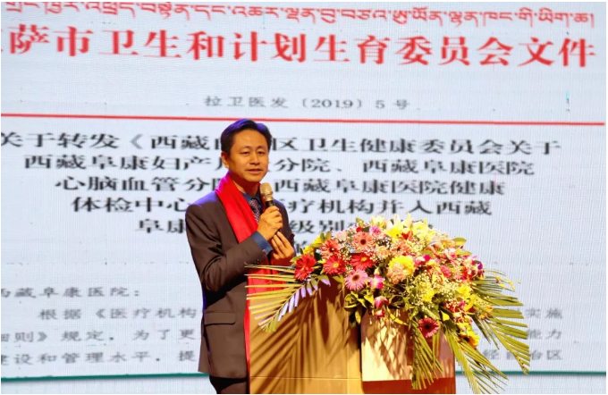 本次大會(huì)特邀嘉賓有:西藏自治區(qū)政協(xié)副主席、西藏自治區(qū)工商聯(lián)主席、西藏自治區(qū)總商會(huì)會(huì)長阿沛·晉源,西藏自治區(qū)工商聯(lián)黨組成員、西藏自治區(qū)工商聯(lián)副主席巴桑多吉,中國農(nóng)業(yè)銀行西藏分行黨委委員副行長、兼拉薩分行黨委書記行長羅布,西藏玉拓醫(yī)療健康養(yǎng)老產(chǎn)業(yè)有限責(zé)任公司專職副總經(jīng)理魯玲華。西藏阜康醫(yī)療高級顧問歐珠羅布主持大會(huì)。