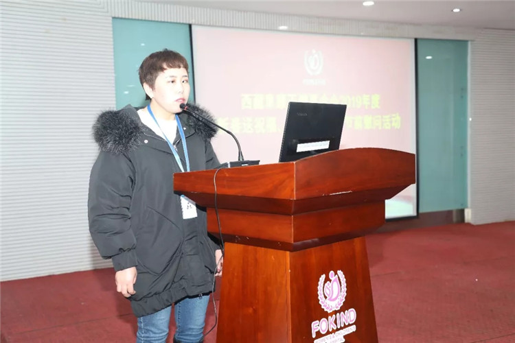 西藏阜康天使基金會秘書長吉拉帶來了阜康天使基金會創(chuàng)始人王斌、劉瀟瀟對困難員工的祝福和慰問,勉勵(lì)大家努力工作,與阜康共同進(jìn)步,在走向幸福的路上一個(gè)都不能少,并祝大家過一個(gè)幸??鞓纺?由于此次受助人員都是藏族員工,吉拉秘書長用藏語鼓勵(lì)大家積極生活、努力工作,要用一顆感恩的心回報(bào)社會。阜康天使基金會將在區(qū)黨委、政府的領(lǐng)導(dǎo)下,緊跟時(shí)代步伐,發(fā)展創(chuàng)新,爭取在助醫(yī)、助學(xué)、助困上幫助到更多的人。