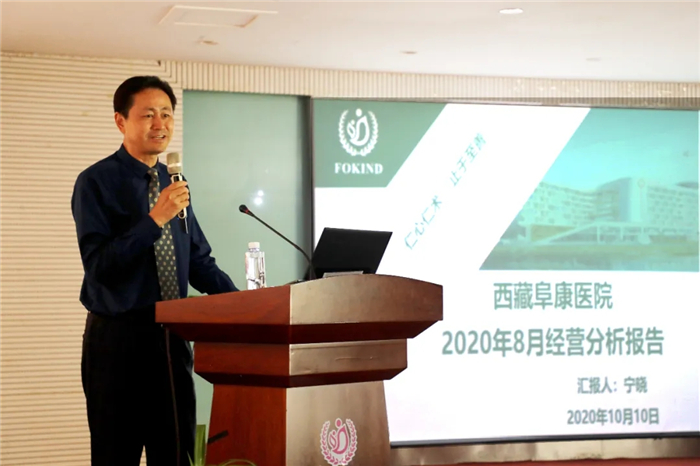 在醫(yī)院運營方面,寧曉總院長匯報了2020年8月經(jīng)營分析報告,他以詳細的圖文數(shù)據(jù),分析了醫(yī)院的經(jīng)營情況,并提出了下一步工作重點。