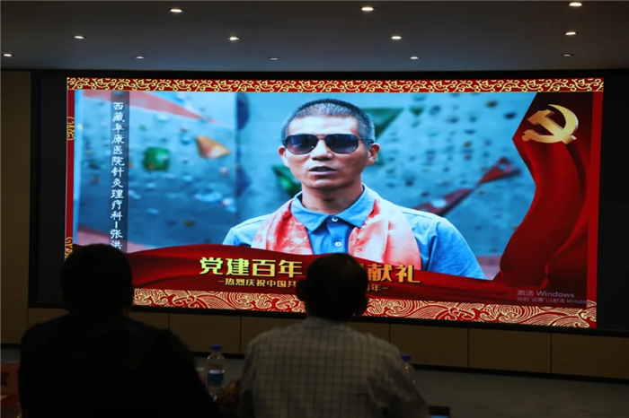 會(huì)議在雄壯的國(guó)歌聲中隆重召開。亞洲第一位登頂珠峰的盲人——阜康醫(yī)院針灸理療科張洪醫(yī)生從國(guó)外發(fā)來祝福視頻;會(huì)議播放了中國(guó)共產(chǎn)黨百年述職專題片,公司全體黨員一起學(xué)習(xí)了百年黨史。
