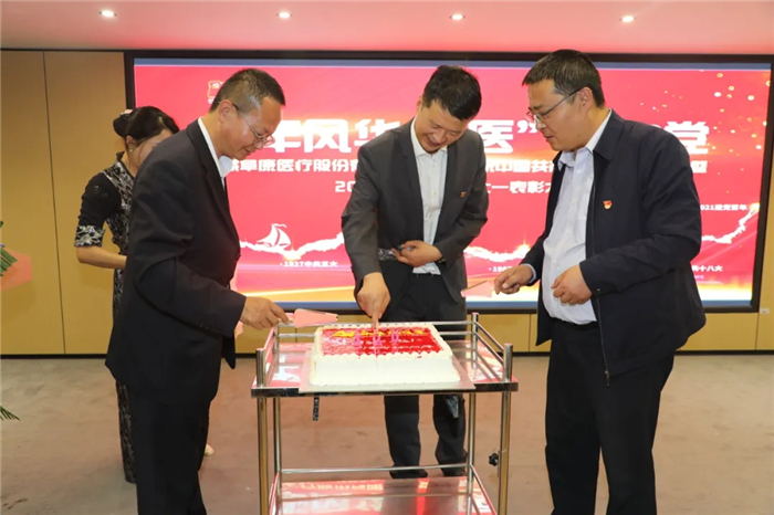 在中國(guó)共產(chǎn)黨建黨百年的歷史時(shí)刻,西藏阜康醫(yī)療黨委還專門制作了慶祝中國(guó)共產(chǎn)黨建黨100周年生日蛋糕,全體黨員共同慶祝黨的百年生日,有力傳達(dá)了"永遠(yuǎn)跟黨走”的鏗鏘心聲!