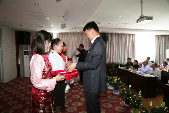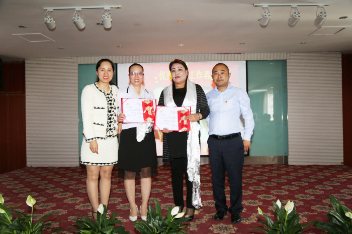 牛亞青、張政、雷羊州、劉秀等同志獲得"優(yōu)秀共產(chǎn)黨員”稱號,何文秀同志、索珍同志獲得"優(yōu)秀黨務工作者”稱號,義診組黨小組獲得"優(yōu)秀黨小組”榮譽,阜康"老兵之家”支部委員會、中共西藏阜康藥店聯(lián)合支部委員會獲得"先進基層黨組織”榮譽。陳彬、何文秀、劉秀、李映、李燕科、江潤霞、孫自豪等7位同志獲得阜康雪域天使志愿者服務隊 "志愿者之星”。區(qū)黨委組織部四處和公司黨委領導為獲獎人員頒獎。