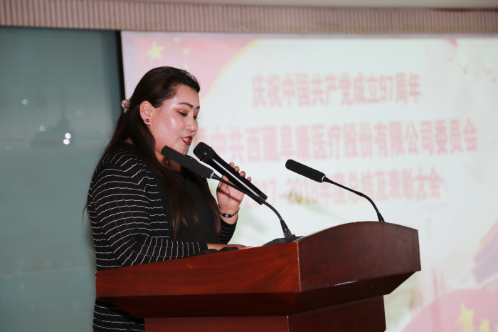 優(yōu)秀黨務工作者索珍作代表發(fā)言。她由衷感謝公司黨委的信任,表示自己會把這份信任變?yōu)楣ぷ鞯膭恿?,進一步提高對患者的服務能力和水平,為醫(yī)院的發(fā)展貢獻自己的力量,不辱一個新時代共產(chǎn)黨員的光榮使命。