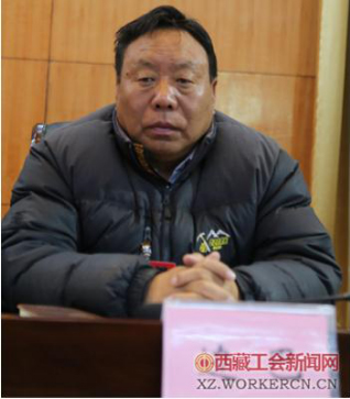 區(qū)總工會黨組成員、巡視員邊巴次仁宣讀《西藏自治區(qū)總工會關(guān)于對2016年全區(qū)實(shí)施工資集體協(xié)商提質(zhì)增效"2345”工程示范企業(yè)、規(guī)范企業(yè)授牌的決定》